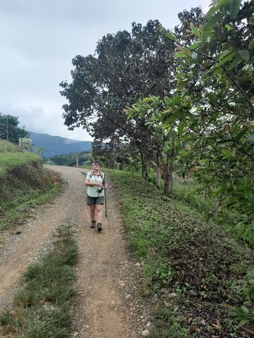 Rando qui se décompose en plusieurs étapes…. une marche sur la piste pour arriver jusqu’à la Finca que nous allons visiter (celle sur les terres de laquelle se trouve cette fameuse chute d’eau).