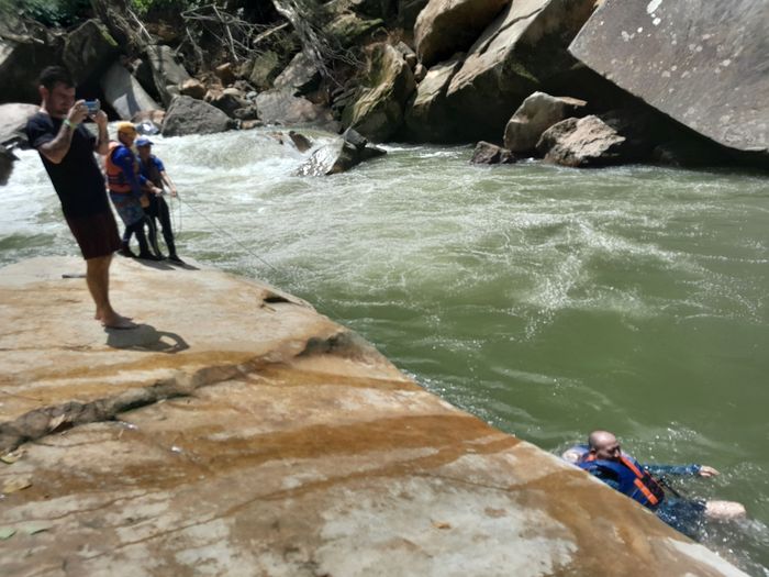 On finit donc par arriver sur les berges du Rio (tu l’avais deviné, car faire toute une balade en gilet de sauvetage….) où je ferais trempette mais bien amarré!