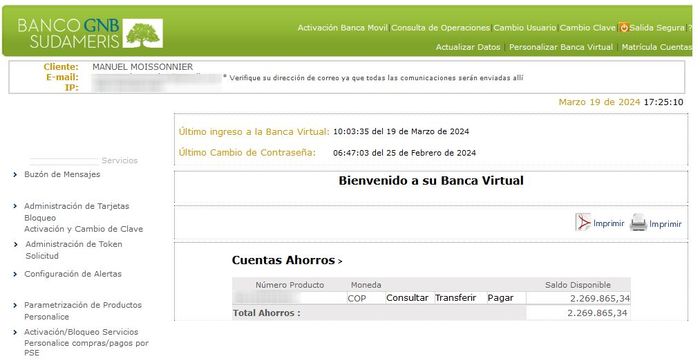 - tu vis en Colombie, en pesos local. Avec un compte local chez GNB Sudameris et un carte de débit liée.