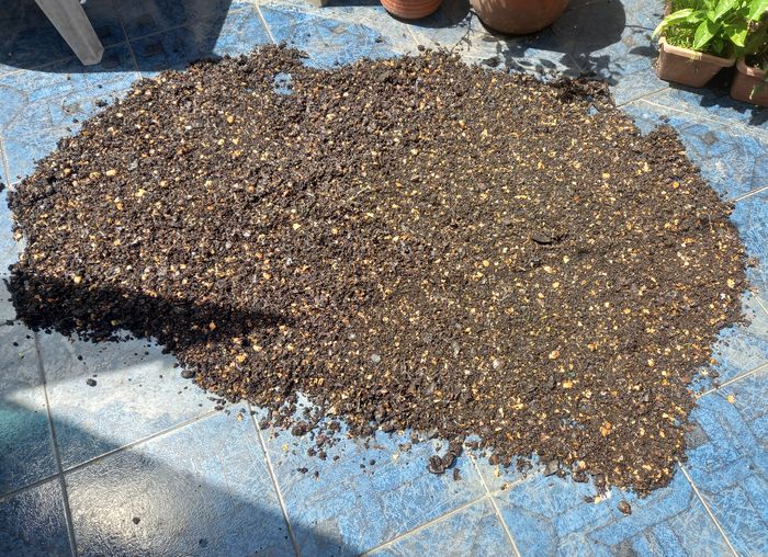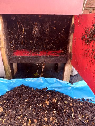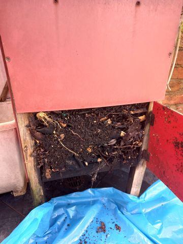Maintenant il me reste à décider du processus de transfert du composte ne cours de traitement depuis le vieux composteur au nouveau…. mais je vais prendre mon temps!