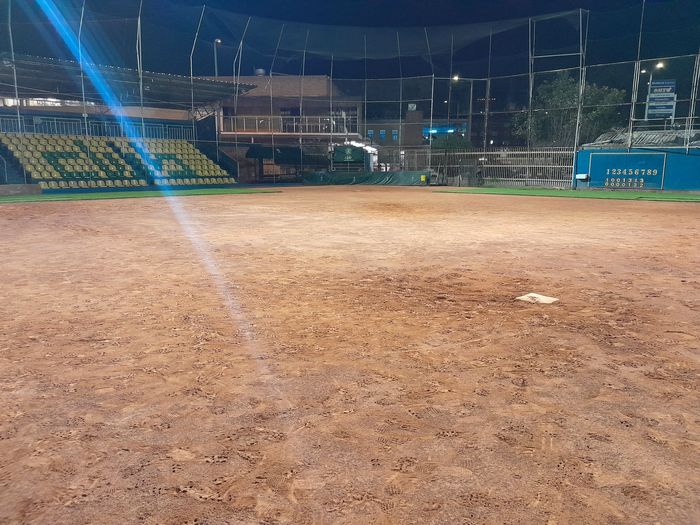 Une superbe pelouse et surtout un éclairage de qualité, ce qui souvent fait défaut ici pour les matchs nocturnes.