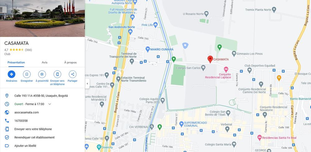 Mais aujourd’hui (enfin dimanche 16 avril) nous devions affronter San Carlos A…. au Club Casamata. Comme les autres, il faut de l’espace donc il se situe au nord, entre l’autopista norte et la Septima, sur la calle 193.