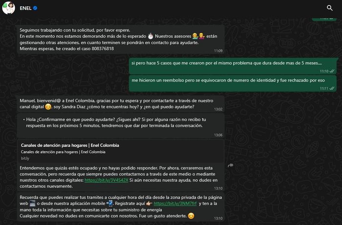 Nouvelle réclamation, via whatsapp le 5 mai 2025, nouvelle référence de dossier, promesse de contact par mail… Et depuis plus rien.