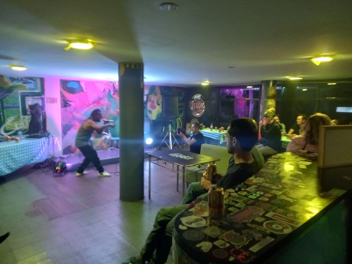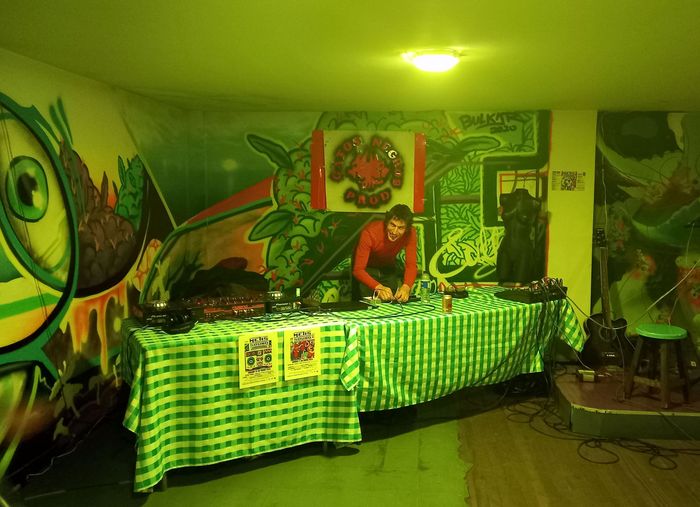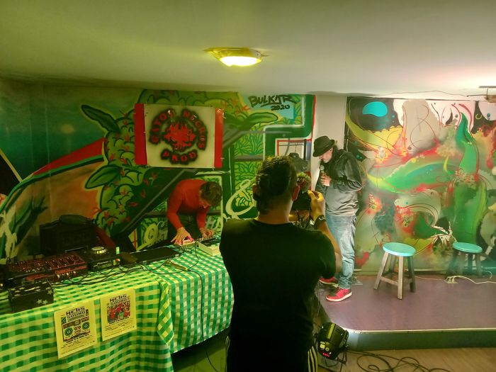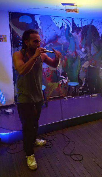 Sur 3 jours, mais premier bon point (pour m’extraire de chez moi), c’est que c’est à 2 pas de l’apaprt! Deuxième bon point, outre d’y voir évoluer Vincent, j’y retrouve Chan et un pote à lui! Par contre le fait que ce soit dans la salle d’une boutique de vente de Marijuana bio n’a joué en rien dans ma décision!