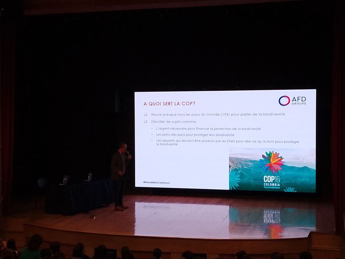 Plus à destination des lycéens, une sorte de table ronde entre 4 ONG, le WWF, l’Association Colombienne des Industries Minières, la Fundacion YURUMI et l’Instituto HUMBOLT. Là encore avec des participants de cette COP16 consacrée à la biodiversité.