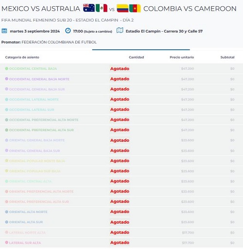 SI on regarde les opportunités, sachant qu’aller à l’Estadio de Techo me demandera plus de temps et d’organisation, j’ai jeté mon dévolu sur le double match de la poule A Mexique-Australie et surtout le Colombie-Cameroun (match fratricide pour mon cœur) de mardi après-midi.