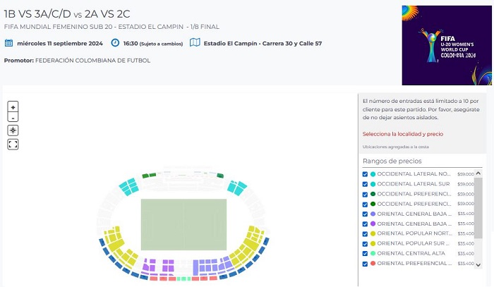 Et les prix me semblent quand même assez doux (pour mon portefeuille, pas pour celui d’un colombien moyen), sûrement pour essayer de remplir les stades pour un maximum de parties.