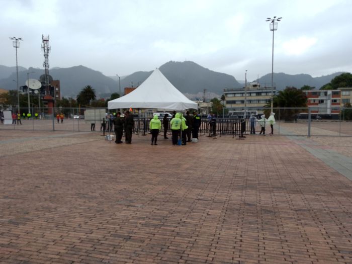 Sauf que l’engouement est grand quand joue la Colombie (les bogotanos ont peu le loisirs de voir jouer leur pays, les hommes jouant à Barranquilla), et il n’y a plus de place!