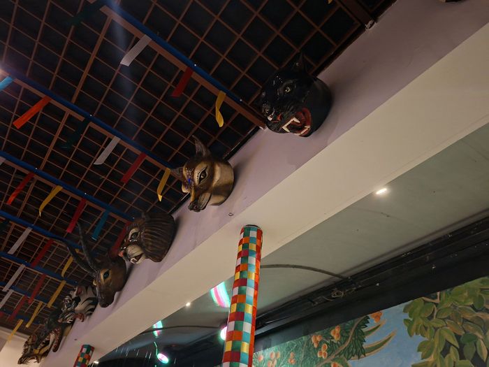 Tu auras, œil avisé, sans doute remarqué ce magnifique masque de tigre. Chaque table à le sien, il y en a aussi de magnifiques accrochés au dessus de nous. Ce sont des éléments emblématiques du célébrissime Carnaval de Barranquilla.