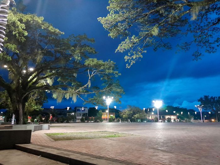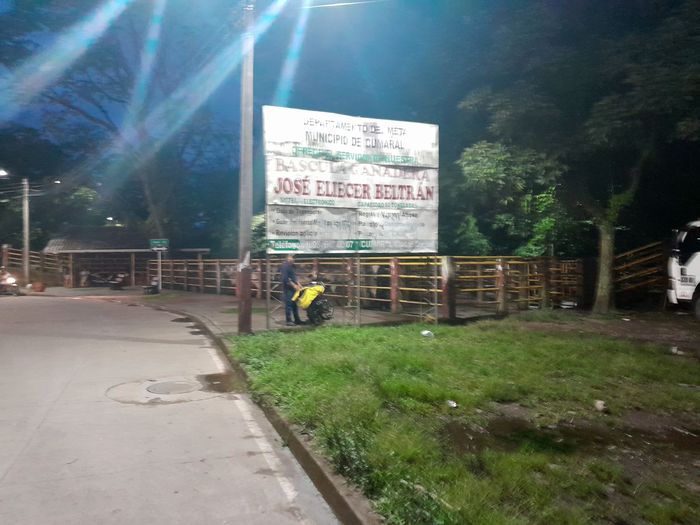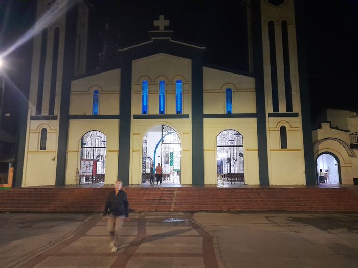 Mais quand je te parle de la pure pause « colombienne », ce fut notre visite du village à la nuit tombante! Visiblement la vie est axée sur l’élevage, avec un centre de pesée et une grande place type foirail…. son classique panneau photo, une église en béton (ce sont des villes « nouvelles » qui ont 100-150 ans environ dans cette zone fraîchement colonisée), sa maison de la culture…