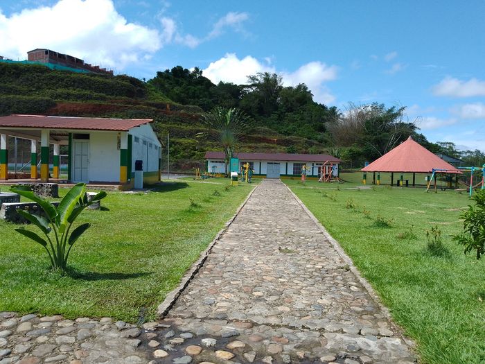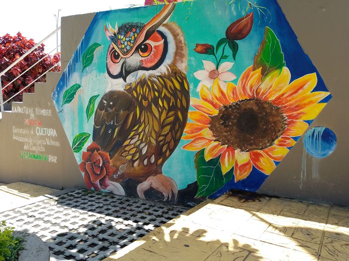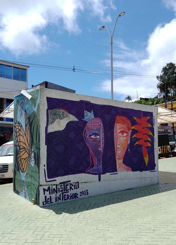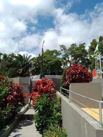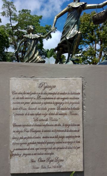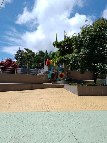 Fraîchement refaite (sur Google Streetview elle est encore en travaux)Là encore du très classique, avec le « letrero » (I Love Norcasia quoi), des bustes, des fresques, des plantations…