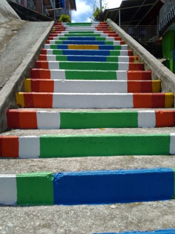 Je t’ai expliqué que le centre était encadré par 2 collinettes parallèles! D’où la présence de nombreux escaliers colorés!
