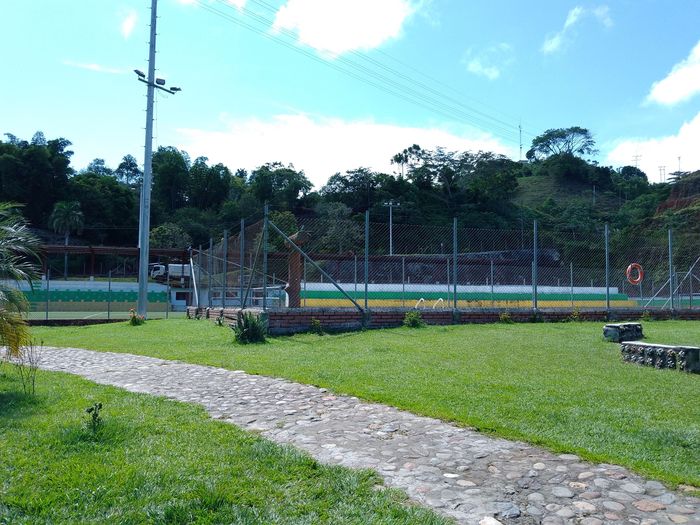 Plutôt riche, terrain de foot synthétique et piscine, mais malheureusement pas en accès libre, fortement fermés par un énorme cadenas!