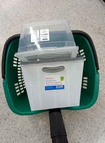 Le vendredi, j’en termine avec la terrasse et les plantes vertes (enfin presque), et je file à Dollarcity acheter quelques boîtes, car le 501 était très fourni en rangements.