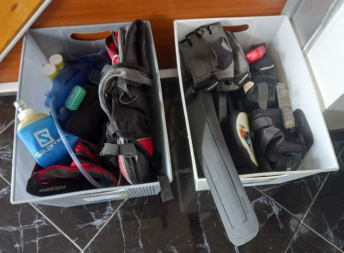 L’objectif, avec l’emploi du temps qui m’attend ce mois (voyage scolaire, trail, course à San Andres,…), je vais continuer à vivre dans le 501 en configuration « strict minimum » et de passer le non-nécessaire dans le 502. Voilà ce que cela donnait le mercredi soir!