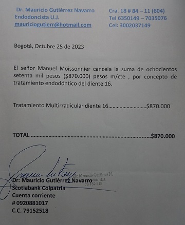 Tu me diras pourquoi pas y aller à Bogota! Jusqu’ici, la santé est quasiment le seul domaine où la non maîtrise complète de l’espagnol me freinait. J’aime bien comprendre ce qui va arriver à mon corps et à mes dents en particulier.