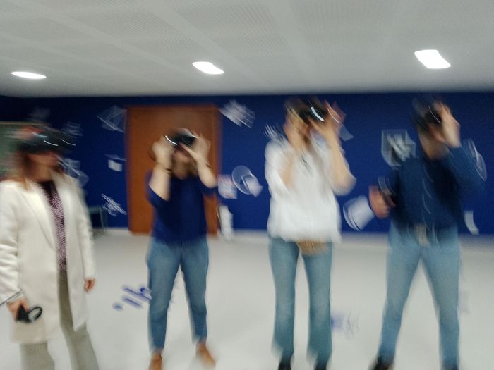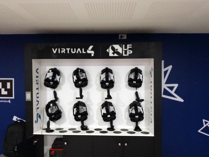 Celle où tu enfiles des masques de réalité virtuelle pour enseigner de manière immersive! Que j’ai testé en même temps que 7 autres collègues (il n’y a que 8 masques, compliqué pour des classes de 24 élèves) et nous avons en 30 minutes, testé les 2 seules capsules existantes à l’heure actuelle: le système solaire et le corps humain.