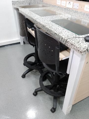 Qui est une autre des salles utilisées en science et surtout énormément cette année par Jean, en techno (bizarrement je n’y enseigne pas cette année). Qui avec ces prises USB sur les unités centrales aux pieds des élèves (dur pour brancher les robots) et ses chaises devenues non réglables en hauteur( avec des élèves de la 6e à la terminale), étaient un cauchemar pour nous (et nos élèves).