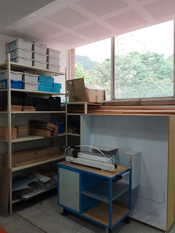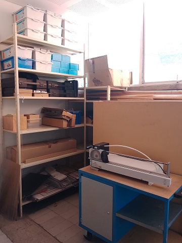 Afin de ménager un peu de place, sans leur céder toute le local, obligatoire dans les textes de la techno, j’ai fini de ranger la réserve à la salle B303, dernière salle de techno des 3. En mettant 2 des étagères dans la salle même… et en utilisant tous les rangements dispos en B307, j’ai réussir à offrir plus de place aux matheux, tout en conservant notre matos encombrant hors de nos salles.