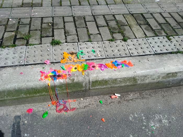 Et le lendemain, les trottoirs ou les murets de la ville ressemblent à ça!