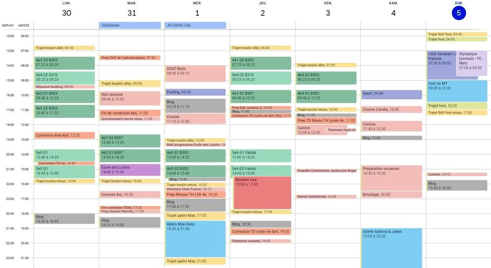 A noter cependant un lundi férié (le 6 novembre) mais reporté dans notre calendrier scolaire le vendredi: en gros, les cours du lundi ont lieu le vendredi et ceux du vendredi, ben ils n’ont pas lieu. Car presque tous les jours fériés tombent un lundi.