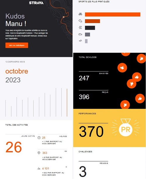 Je rajoute même, puisqu’il est arrivé, le bilan Strava pour le mois d’octobre.