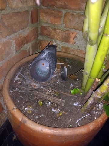 Logis: décidément ma terrasse est devenu The Place To Be pour le pigeon du coin! Je pense que c’est le même couple, mais à peine Piupiu II parti, voilà qu’ils remettent cela! 30 octobre…. 1 nouvel oeuf! 1er novembre, un second!