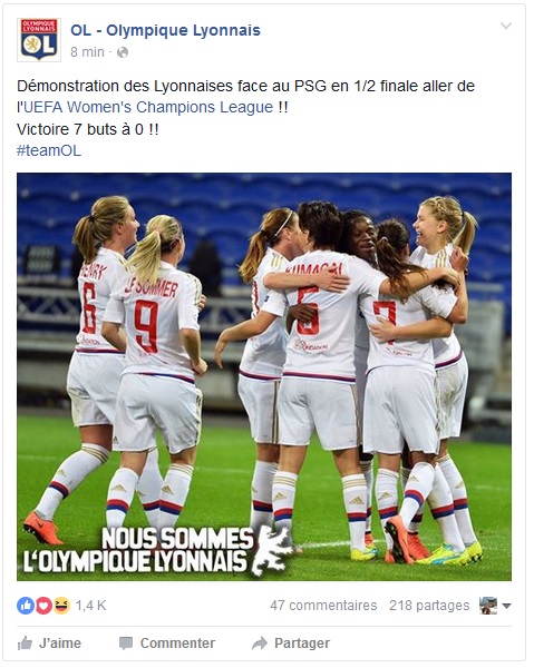 Foot bis: petit streaming plaisir la semaine passée, pour voir l’OL atomisé le PSG… en féminines!
