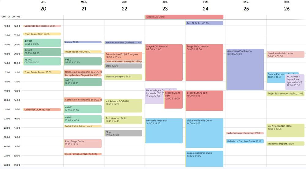 2 agendas, tout deux de boulot, mais l’un avec 4 jours et demi à Quito, en formation. Et l’autre au boulot version classique!
