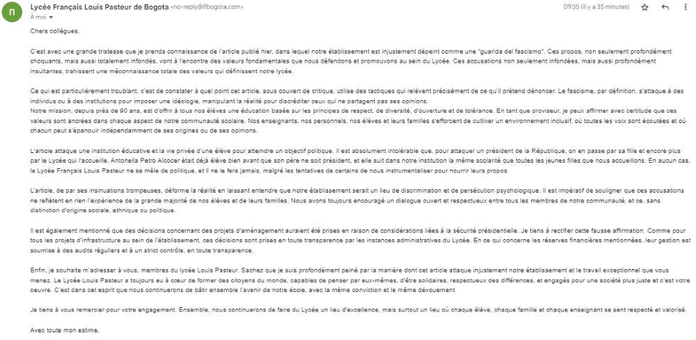 Pourtant habitué aux excès de la presse, j’avoue que « Lycée Français, refuge du fascisme »…. ça secoue! Mais apparemment le journaliste reprend dans son édito, des propos qu’aurait tenu le Président en fin d’année scolaire, en retirant sa fille! Je ne sais pas trop n’ayant pas suivi, et je laisse cela aux personnes plus calées que moi….