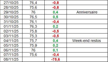 Les semaines se suivent et globalement se ressemblent. Pas de gains significatifs, pas de chutes vertigineuses, même si un frémissement ces 2 derniers jours. Pas pour une publication particulière, simplement un lecteur intéressé tombé par hasard sur le blog!
