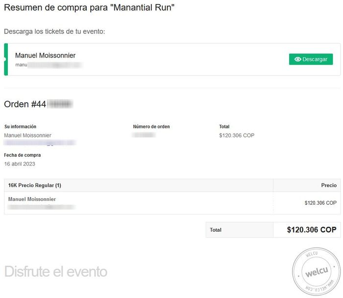 Auquel je me suis inscrit en ligne (plutôt pratique même si quasiment 2,5€ de frais sont ajoutés) et dont j’ai reçu le billet… Coût total, 25€.