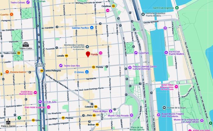 Après il nous faut, aujourd’hui, changer quelques uns de ces gros billets! Et apparemment le lieu le plus connu dans la capitale argentine est la rue piétonne Calle Florida.