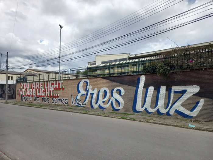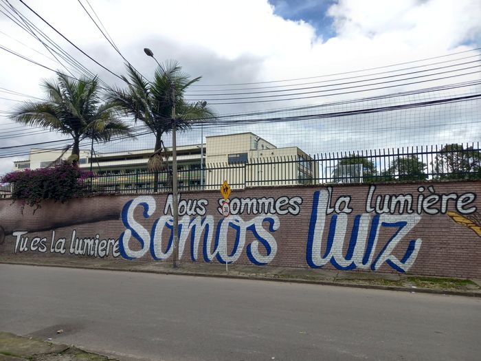 Car j’ai remarqué cet établissement scolaire surtout pour ses longs murs d’enceinte, recouvert de peintures, avec des slogans dans de nombreuses langues! C’est d’ailleurs sur le coin rédigé en français que je suis tombé en premier!