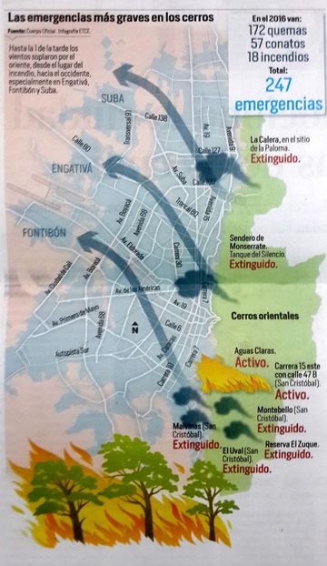 Et oui, tous les incendies de fin 2015 dans la périphérie proche de Bogota sont dus à la sécheresse, due elle à cet enfant Jésus!