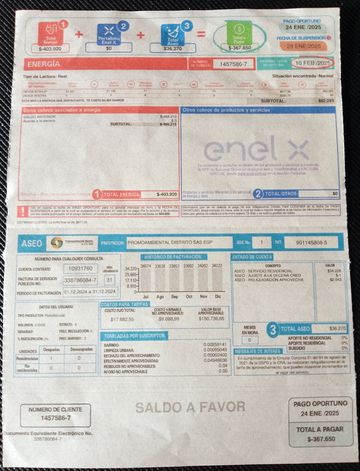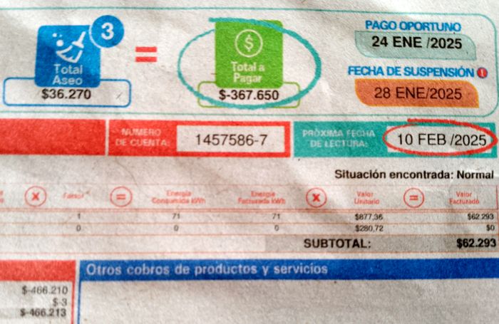 La bonne, l’excellente surprise même, c’est que mon erreur a été transformée en un solde en ma faveur. De 403.000 COP à 367.000 maintenant, après que ma facture de janvier en a été retirée!