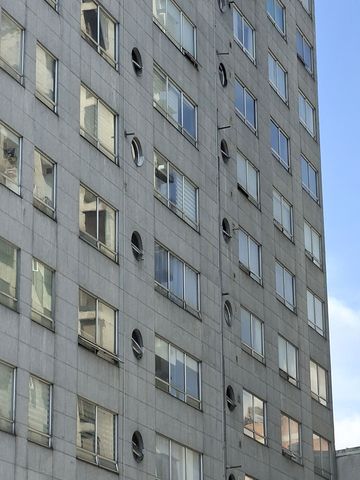Enfin un socle sur pilotis : Le rez-de-chaussée repose sur des colonnes massives, créant un espace semi-ouvert qui abrite des commerces et donne au bâtiment une allure aérienne malgré sa masse imposante.