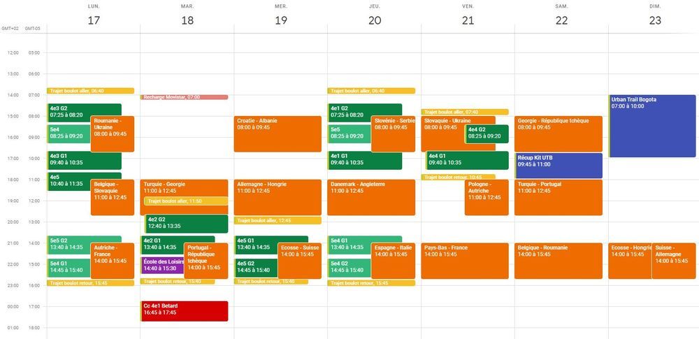 En plein dans les heures de cours donc! Voici à quoi ressemble ma première semaine en combinant les 2!