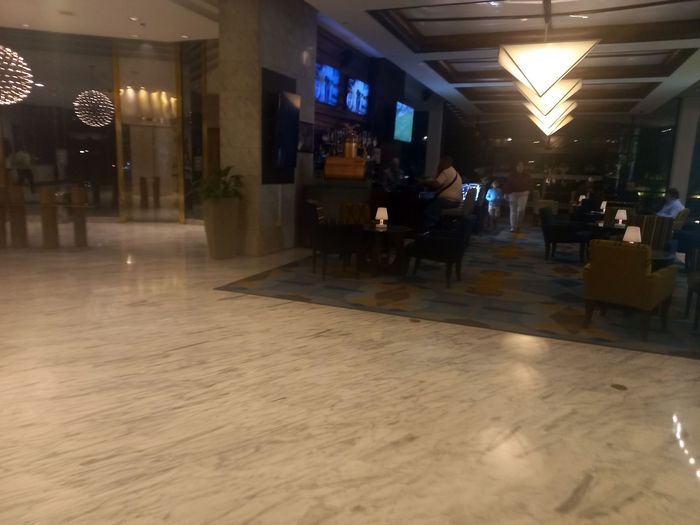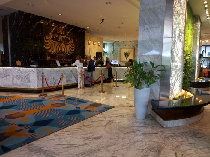 Hall d’entrée majestueux (mais vieillot), personnel en livrée, 4 ascenseurs fonctionnant avec la carte-clé de la chambre,…..pas habitué le Manu.