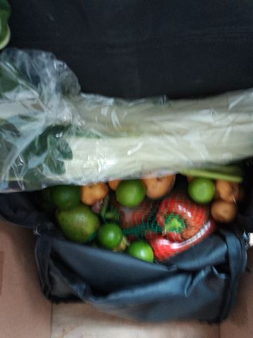 Gastronomie: merci Juan et Chan, avec mon panier hebdomadaire. Dont le second récupéré au local (alors qu’en temps normal il est livré au lycée) car ce jeudi-là, c’était Dia Sin Caro.