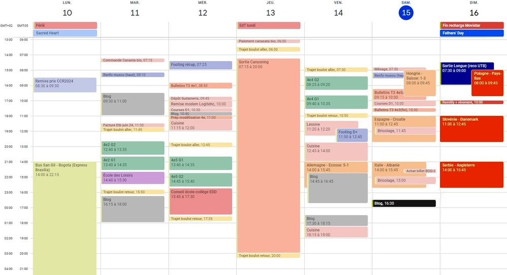 Agendas, agendas! Une première semaine étrange, avec un lundi férié mais « reporté » (pour une question d’équilibre horaire) au mardi. Et une fin de semaine sportive!