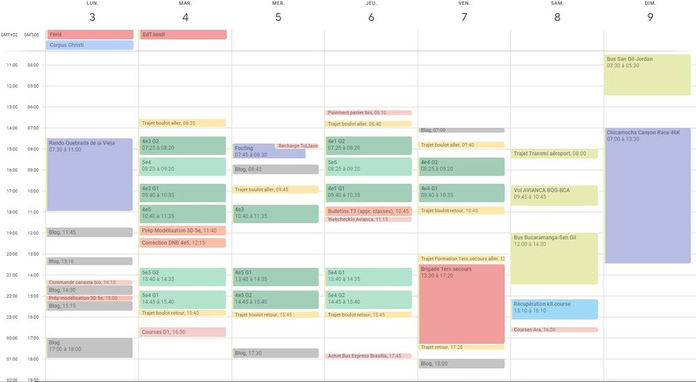 Et une deuxième semaine de boulot tout aussi étrange, avec de nouveau un lundi férié (mais des collègues bossaient pour le grand oral du bac et moi je le consacrais à revenir de San Gil), reporté lui au jeudi. Mais le jeudi j’avais accompagnement de sortie scolaire, sportive là encore!