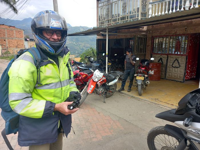 Heureusement mon ami Philippe s’y rendait aussi à moto et m’a donc attendu le vendredi soir pour me loger à sa finca de Caqueza, qui coupait de manière parfaite (pas en distance mais en fatigue) le trajet! On se retrouve chez lui, on discute le coup, avale un bout de pizza sur la place centrale, et au lit!