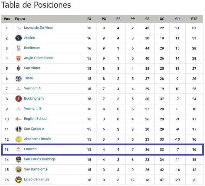 Je t’avais laissé le 16 avril avec une piètre série de 4 défaites en 4 matchs et une peu flatteuse 4e place. Autant que te dire de suite que la série noire s’est poursuivie…. avec 4 nouvelles défaites: 1-0 sur un unique pénalty contre San Carlos A; un vilain 5-3 face à San Viator, avec un effondrement dès le 1er quart d’heure (3-0) et une belle boulette de ma part, offrant un but; puis 2 matchs où je n’ai pu participer, l’un pour un trail (et apparemment défaite honteuse 2-1 contre l’English School, à 11 contre 10 après avoir mené 1-0), l’autre pour match décalé en semaine (3-1 contre le lycée italien Da Vinci).