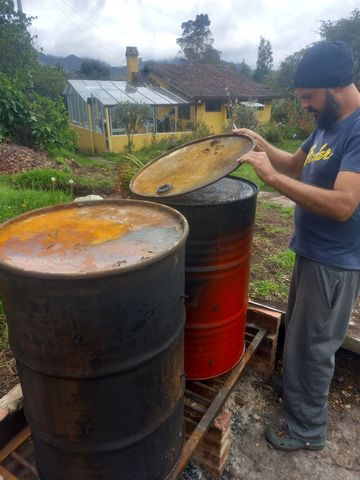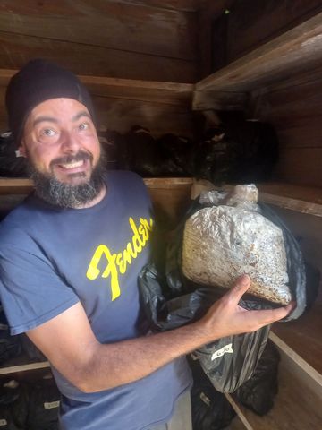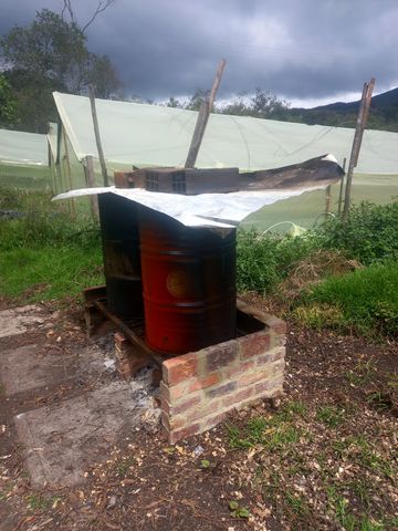 Un produit phare, peu répandu en Colombie, et spécialité du Chan, les pleurotes. La montée en gamme, c’est que, à part les « graines », tout est fait sur place, même le substrat provenant de l’élagage des arbres de la ferme, le système de stérilisation de ce substrat (les bidon de pétrole, avec un fond d’eau et un bûché dessous. Et un local flambant neuf (disons, remis à neuf).
