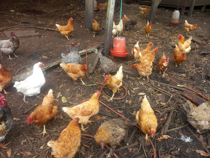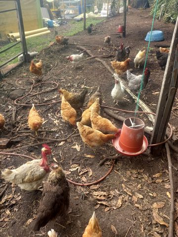 … il y a les poules pondeuses de la ferme (production actuelle 210 œufs à la semaine).