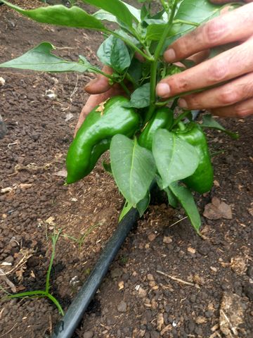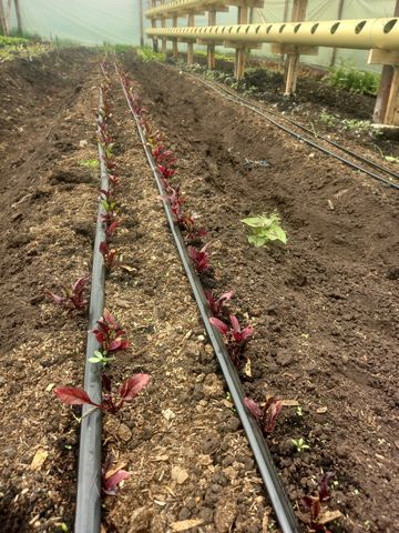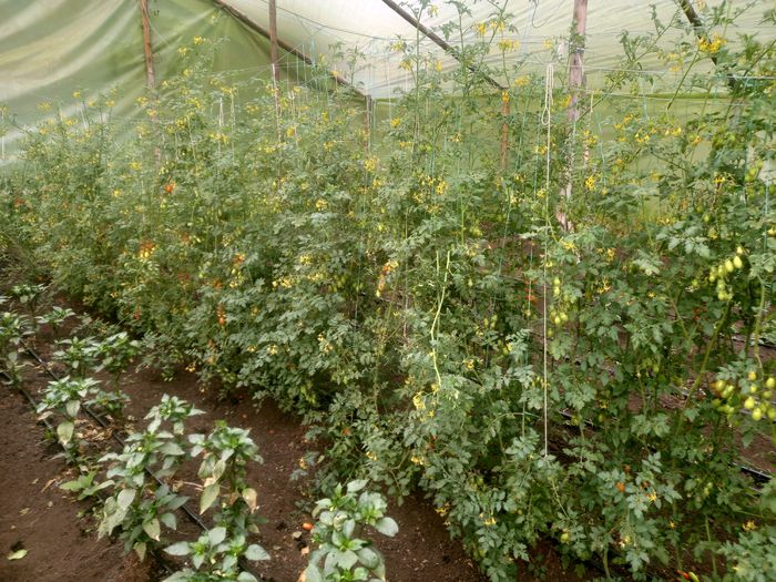Dans l’anciennement »plus » grande: de belles rangées de tomates cerises de différentes races, des poivrons et de piments.