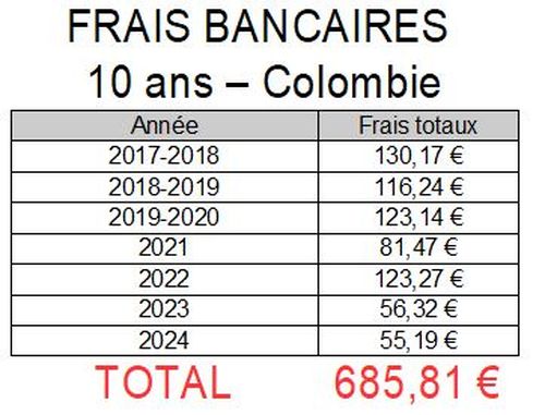 En gros 55€ de frais. Pour vivre à l’étranger, en pesos colombiens tout en étant payé en euros, c’est plutôt un bon score.