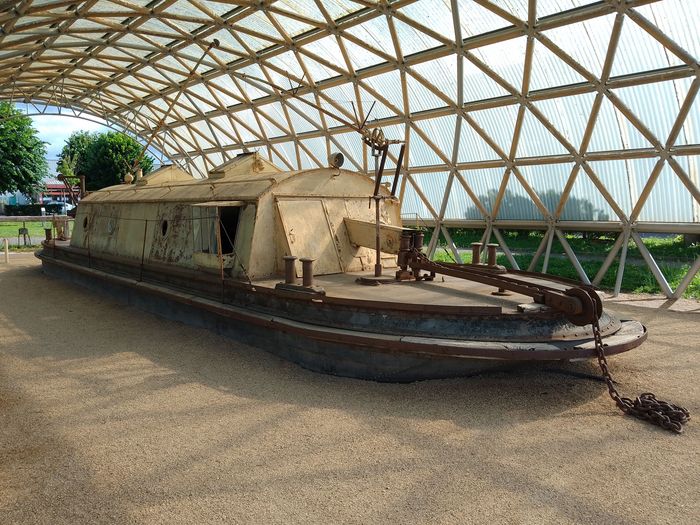 Puis sur le canal, passant un tunnel (du canal, moi j’ai le droit de passer au-dessus) je tombe ensuite à Puilly-en-Auxois, sur un des derniers remorqueurs électriques servant à tirer les péniches sous ce même tunnel, afin d’y éviter les avaries!