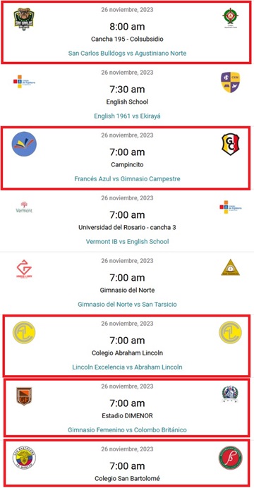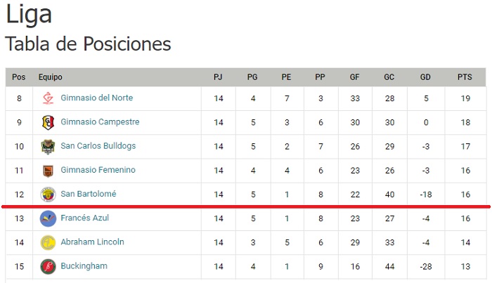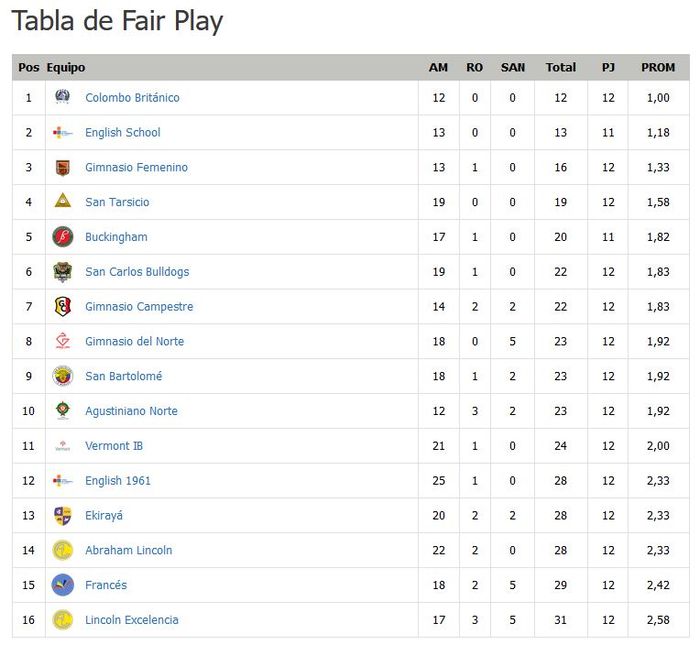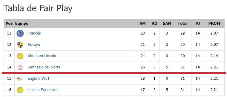 Un espoir de doubler le Gimnasio Feminino, qui recoit le leader; nous pouvons rejoindre San Carlos Buldog si ils perdent, mais nous resterons derrière au Fair-play. Et enfin un match qui ne nous arrange pas, San Bartolomé-Buckingham, à moins d’un nul. Et puis il a le fair-play: outre un hypothétique pe+étage deplombs de notre part, cv4est surtout la situation de l’Abraham Lincoln qui nous inquiète, car si ils passent dans les 2 derneirs (du classement Fair-play), ils « libèrent » une place de barragiste supplémentaire! En résumé, compliqué d’extrapoler!